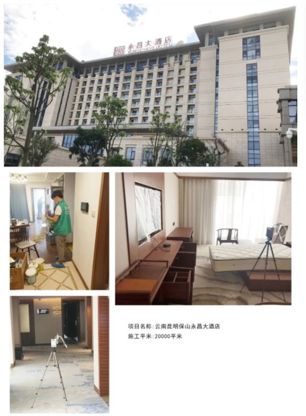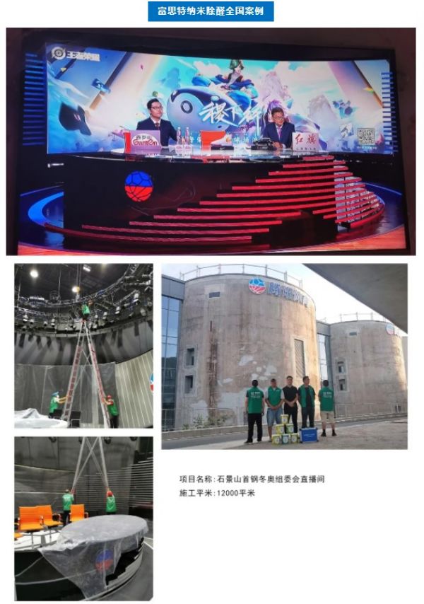 本次使用的疾速除甲醛纳米液、长效除甲醛纳米液、除甲醛和异味二合一毡是富思特新材料公司自主研发的除醛产品。产品中的有效成分可以在室温下与甲醛发生反应,有效清除甲醛,安全可靠、无二次污染。经权威机构检测,长效除甲醛喷剂对甲醛净化的持久性达到85%以上。可以应用于住宅、学校、办公室、酒店、餐厅、公共建筑物等。