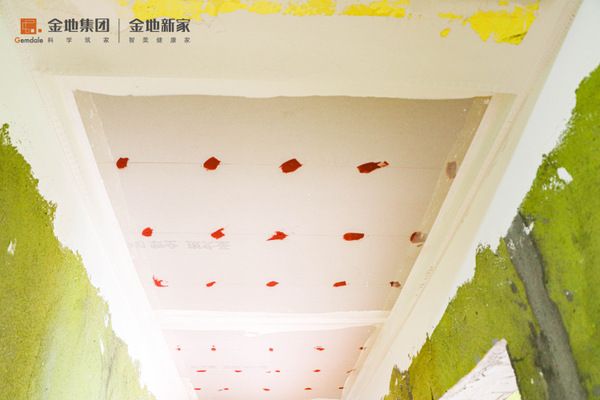 “黄墙绿地”也称墙固和地固,其实是一种界面剂,金地新家健康整装采用的是一种绿色环保材料,起到是一种承上启下的作用。在施工放样前刷涂,不仅令标识更清晰,还可对墙地面进行防护、弥补缺陷,在后续墙地面施工中,起到基础粘合作用。