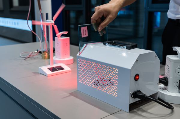在水密性测试的隔壁,是隔音隔噪体验空间,里面安放了6台高功率浴霸,以及一台音响。当6台浴霸同时开启时,可以感受到强烈的光照和热辐射。如果这个实验不够直观,那么旁边的一台小风扇会让你知道玻璃对热辐射的阻挡。把这台靠热能转动的小风扇放在热能发射机面前,它会迅速转动,但是如果在风扇和机器之间这档不同的玻璃,就能看出不同品种的玻璃的阻热性能——阻热性能越强,风扇转动越慢。通过实验可以发现,LOW-E玻璃的阻热性能最强,而普通的白玻阻热性能相当一般。因此,如果想要选一款节能环保的门窗产品,记得注意看他们的玻璃用材哦,LOW-E玻璃是首选哦。