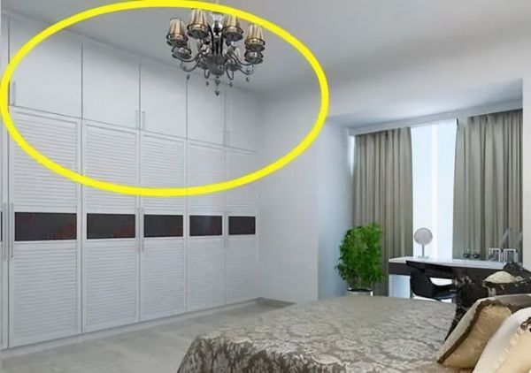 卧室面积不大的情况下,如果选择衣柜做到顶,那会使室内看起来压抑,而且也不利于通风,拿取物品的时候,经常还要拿凳子或是梯子,容易造成安全隐患,因此,从安全的角度出发,老师傅不建议衣柜做到顶。
