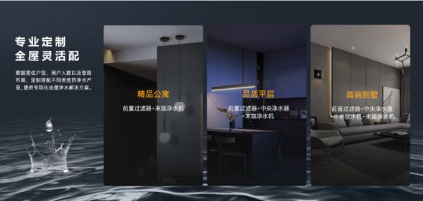 安心加云联在地产行业积累了大量的落地经验,能够根据不同的居住户型、管路布局、用户人数以及生活场景等定制搭配不同类型的净水产品,提供从项目咨询、定制套餐、施工建设、售后服务等专项化全屋净水解决方案。