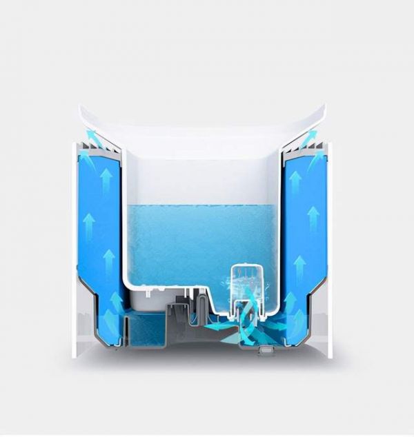 恒定、均匀的加湿效果更是一次技术的革新。特别采用“T型”双箱专利创新结构设计,水箱和蒸发水槽分离,蒸发量不受水箱水量影响,且蒸发滤网独创下密上疏设计,采用毛细管吸水原理,高效吸水,水通过蒸发水槽充分浸润整个加湿滤网,蒸发面积大且恒定,蒸发效率高,进而实现恒定加湿量加湿,达到更满意的加湿效果。