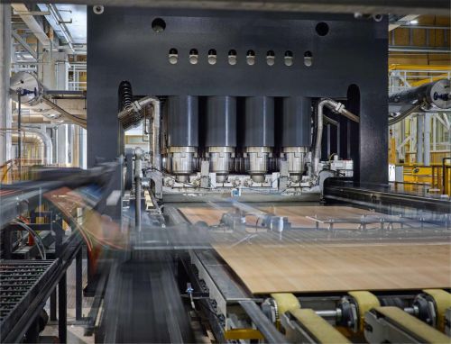 随后,德国帕尔曼引进的刨片设备对处理过的原材精细长材刨片,布特纳气流干燥机将湿刨片进行烘干以及滚筒式拌胶机拌胶,最后才是德国辛北尔康普铺装机对刨片进行高精度铺装。整个过程完全依托先进设备和一流生产线,从原材和制造,每个环节严苛品控,最终造出能适用各种空间的高品质板材。
