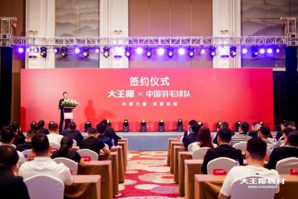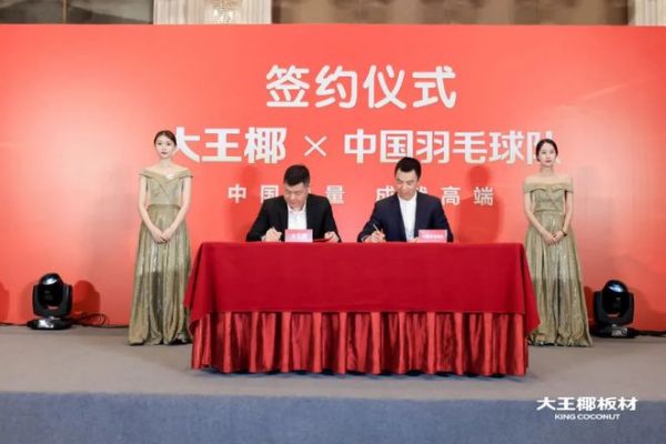 2021年7月31日,大王椰板材与中国羽毛球队合作签约仪式在浙江杭州隆重举行,大王椰板材正式成为中国国家羽毛球队的官方供应商。双方虽然在不同的赛场,但是对于专业、对于荣耀、对于勇夺第一的冠军精神,却有着相同的信念与执着。