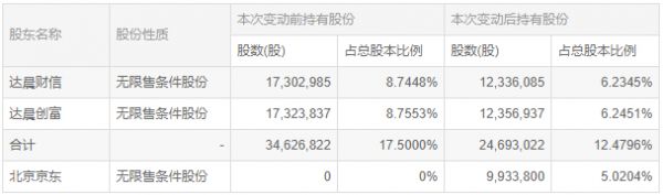 公告显示,广州尚品宅配家居股份有限公司收到持股5%以上股东深圳市达晨财信创业投资管理有限公司和天津达晨创富股权投资基金中心(有限合伙)的通知,达晨财信和达晨创富向北京京东世纪贸易有限公司协议转让其持有的公司 9,933,800股股份事项已在中国证券登记结算有限责任公司深圳分公司完成过户登记手续。过户日期为2021年8月17日。