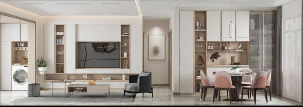 小户型可以考虑当下比较流行的客餐厅一体化设计,打掉客厅和餐厅之前的墙(要注意一定是要非承重墙哦),让客厅和餐厅相连,减少空间压迫感,房间更显开阔。