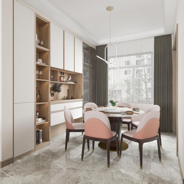 定制餐边柜的时候最好选择更餐桌椅同色系的,让餐厅看起来整体感更强。