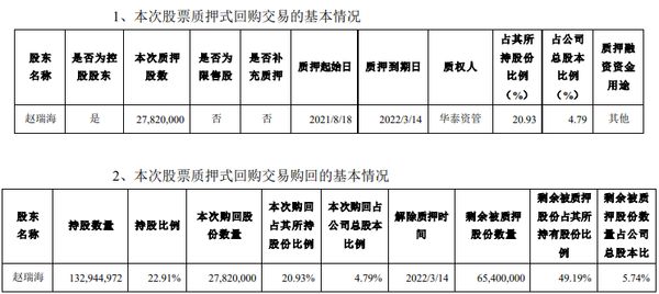 截至本公告披露日,赵瑞海先生累计质押股数为6540万股,占其所持股份比例为49.19%。赵瑞宾先生累计质押股数为5900万股,占其所持股份比例为45.29%。