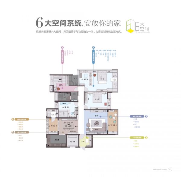 家装设计不能一概而论,要以空间特点为基础实现其独特功能,尤其是面积较小的户型,更需要设计师做到“量身定制”。对此,欧派衣柜独创了博大精深收纳体系,同时将房屋划分为客厅、餐厅、阳台、卧室、功能房、入户玄关六大空间,将用户需求与户型空间相结合,打造独一无二的设计方案。