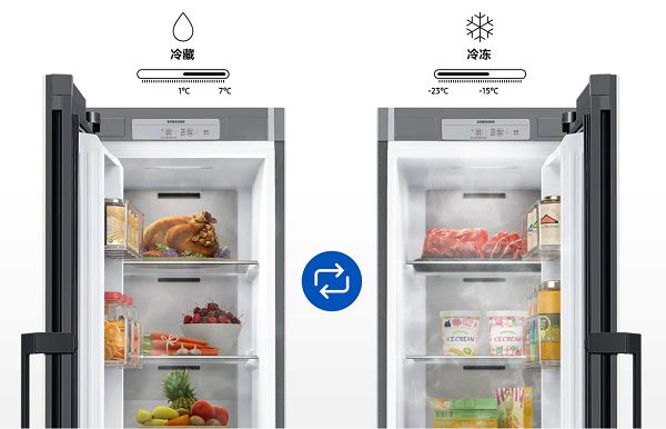 Samsung BESPOKE系列冰箱拥有多重保鲜技术,采取全空间变温设计,可以在冷藏和冷冻之间自由转换。用户可以根据自己的需求自行设置存储模式,无论是有机果蔬的冷藏还是生鲜冷冻都可以轻松完成。