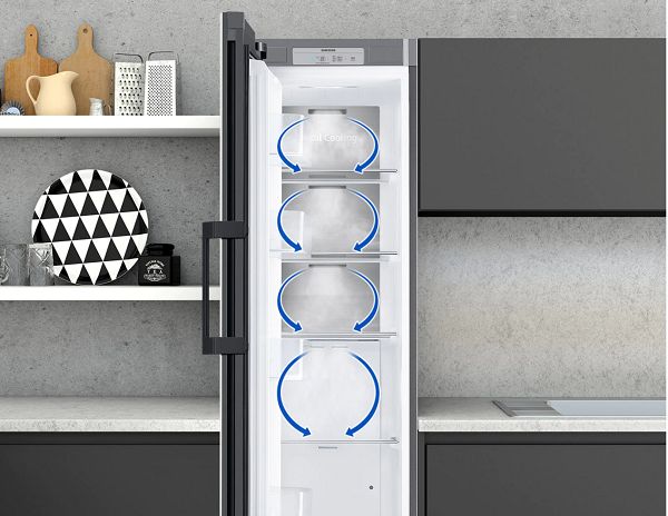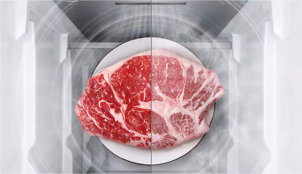 用冰箱存储肉类时,肉的表面经常会结上一层厚厚的冰霜,除霜过程不仅费时费力,还会影响食材的新鲜。为解决这一痛点,Samsung BESPOKE系列冰箱应用了风冷无霜技术,通过提高温度均匀性和制冷的速度,有效避免了凝露积水,让食材在保鲜的同时不会结霜,既保障了食材的新鲜,又节省了人力时间成本。