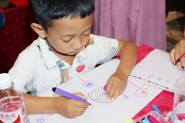 首先,工作人员用简单的小游戏成功调动起孩子们的参与感,然后再邀请家长与孩子一起完成亲子绘画,在孩子稚嫩的一笔一画中,描绘出对家庭、对社会、对未来的美好祝愿。