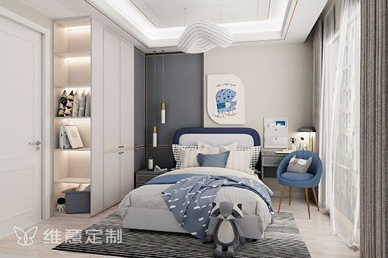 以自由、探索、机械的理念为灵感,满足少年的赛车梦。以充满自然气息的蓝色与木色配合,柔和且简约,让孩子安静沉稳地进入梦乡。
