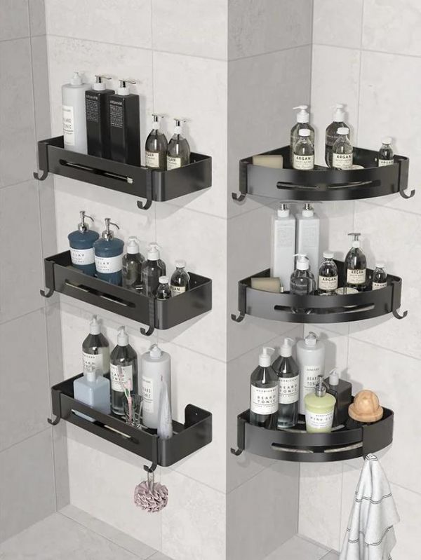 卫生间置物架,不用打孔安装很简单,合理利用角落空间,把卫生间洗漱用的瓶瓶罐罐统统收纳起来,卫生间干净整洁,不会凌乱。