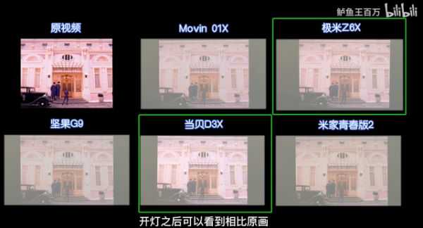 从下图我们也能看出,当贝D3X有1050ANSI流明的亮度,相比起极米受光线影响更小。