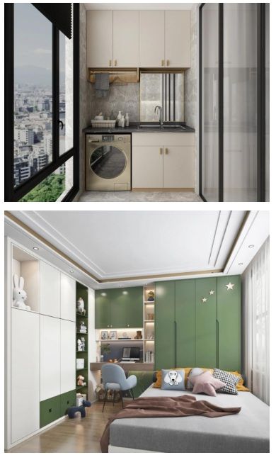 最后,在强韧抗变形、健康环保的基础上,产品颜值也很重要。近两年市面上轻奢简约风很是流行,高光、UV、PET层出不穷。然而这些都对基板有较高的要求,一般的小厂生产的板材,板材表面平整度不够,工艺不达标,做不了这些饰面工艺,即使强行制作也会出现表面不平整、鼓泡等类似的现象。