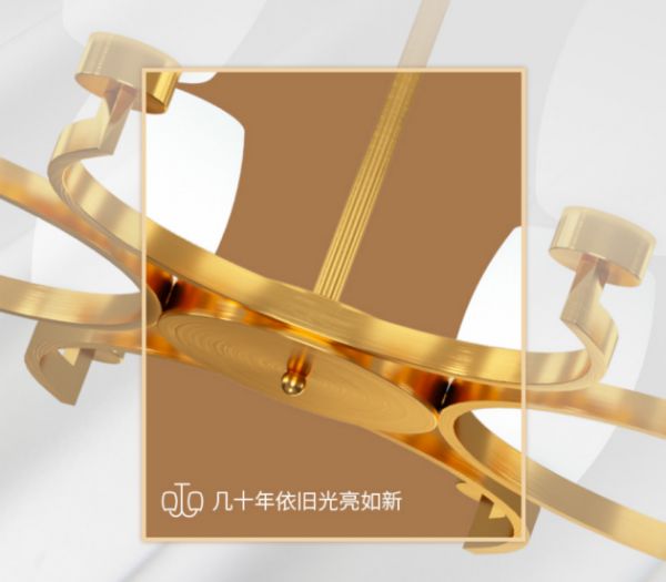 宜美照明金环吊灯搭配流光金灯架,金黄色的外观奢华大气,高强度加厚五金型材,醇厚质感,耐腐蚀、耐氧化、抗刮伤,表面经过多层纳米电镀,能够保证几十年依旧光亮如新。