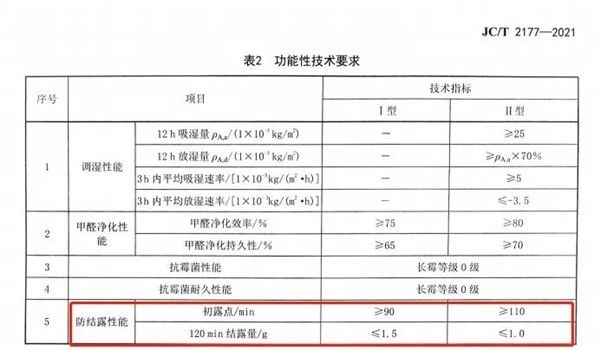 在一般技术要求中增加了“燃烧性能等级”达到A1级要求,在功能性技术要求中增加了防结露性能要求,在有害物质限量要求中增加了放射性核素要求。