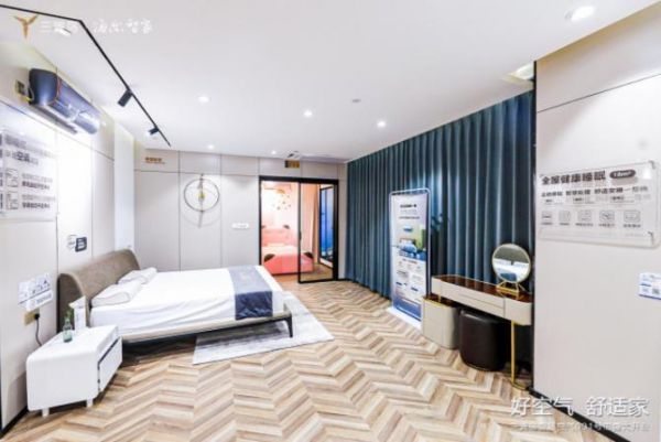 具体来看,客厅是娱乐、会客的中心,需要更具美感的设计。海尔空调的定制方案中,通过180mm超薄设计,让空调隐匿于室,不破坏客厅整体美观的同时,满足用户对空气温度、湿度、洁净度的品质需求。卧室需要静音、舒适的环境,海尔空气方案中融入了业界最低18分贝超静音空调,搭配柔和送风模式,创造舒适、健康的睡眠场景方案。