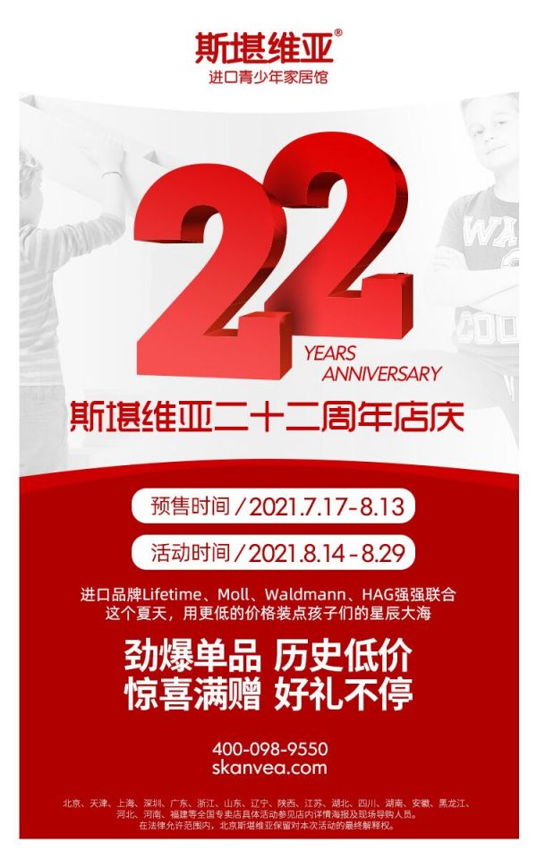8月14日-8月29日,斯堪维亚22周年店庆月,期待与您一起守护孩子的健康成长,为孩子打造一个全新的童真世界。