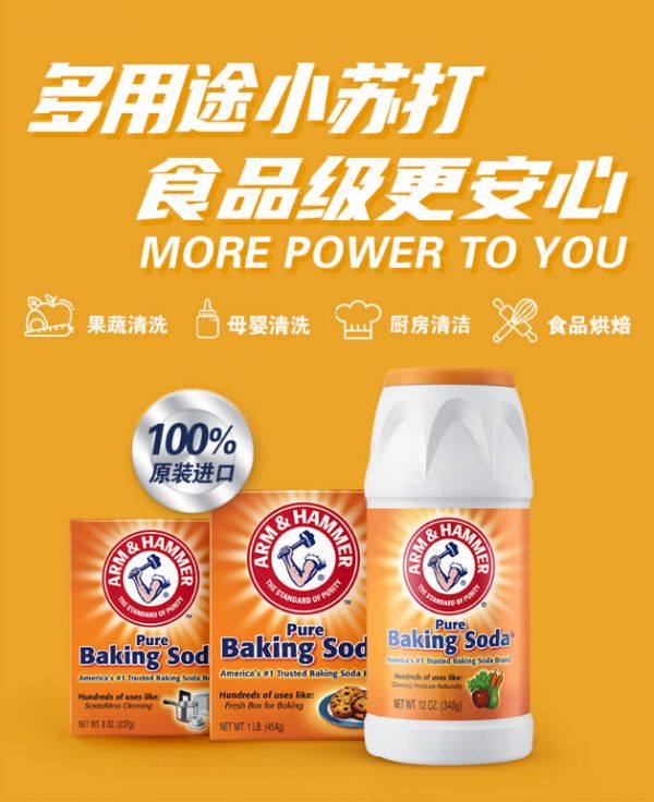 至今已有170多年历史的艾禾美,是美国切迟杜威公司旗下小苏打品牌,专注于家庭及个人护理,在美国市场拥有很高的知名度和市场占有率。艾禾美小苏打的主要成分都是天然矿物质,纯度超过99.9%,同时也是食品级纯净标准的小苏打产品,所以安全可食用,清洁更安心。