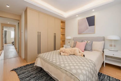 助弓装饰比较注重整体感的搭配,虽然是作为婚房,但是装修风格也没有选用亮丽的色彩,室内饰品、家具色彩风格等搭配协调一致,简约的设计同样可以很温馨,整体给人一种和谐、美观与舒适的视觉效果。