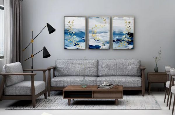 我们可以看到,该设计中,客厅采用了质感温馨舒适的实木布艺沙发,再搭配沉稳精致的暗色茶几,家具则采用轻中式风,有格调也有禅意,使整个空间简洁、大方又舒缓自然,韵味让人回味无穷。