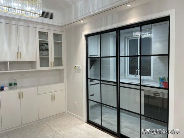 餐厅旁边就是厨房了,安装了黑色边框透明玻璃门,可以透过玻璃看到厨房里面,显得空间比较宽敞。站在餐厅,可以看到厨房里面,很有空间感。一般来说,现在都比较流行黑色边框的推拉门,颜值非常高,效果也比较好看。煮好的饭菜可以很快端出来,空间在布局上,还是蛮不错的。