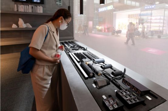 智慧零售照明区主打低压磁吸导轨系统。通过华艺智慧照明系统模拟商业零售场所的通道、墙面、层板、模特、氛围等场景,完美呈现智慧照明为商业用户赋能的价值。