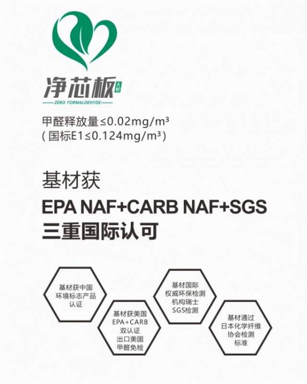 据了解,帝标高端全屋家居无醛净芯板采用的是MDI生态胶(无醛生态粘合剂),这种生态胶本身不含甲醛,且使用过程中不分解甲醛,能从源头杜绝甲醛危害。本着对极致环保的追求,对每一个细节的严苛把控,帝标的无醛净芯板基材获得了包括美国EPA-NAF和CARB-NAF双认证,国际权威环保监测机构瑞士SGS无醛添加检测三重国际权威认证。美国环保署的NAF(No-added formadehyde)无醛豁免认证,要求板材在生产过程中,不使用、不添加任何含有甲醛成分的胶水、助剂等;SGS是全球领先的检验、鉴定、测试和认证机构,是全球公认的质量和诚信基准,能获得SGS认证,意味着帝标无醛添加净芯板达到了世界范围内环保等级的金字塔尖。