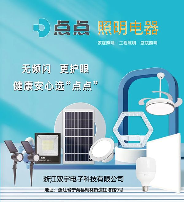 2018年,双宇电子创立了国内自主品牌点点照明,开始在国内市场进行推广。今年年初,点点照明开始在国内开展大规模的招商加盟,立足浙江,辐射全国。目前点点照明已经在浙江、江苏、安徽、湖北、江西等省份开拓了广阔的市场,并在国内大部分地区建立了分销机构。