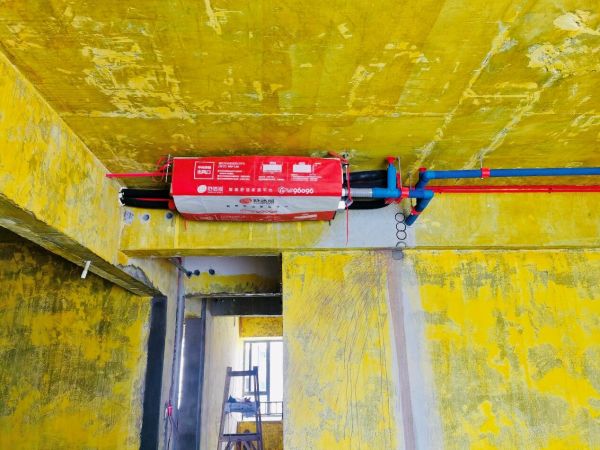 舒适猫贵阳工地的技师正拉开卷尺,确认着锅炉的安装高度;