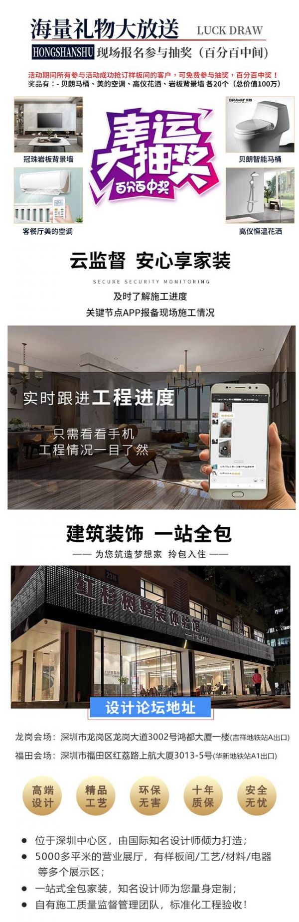 延期(1天赔200)、水电终身质保、材料假一罚十、零增项、不满意砸掉重装。