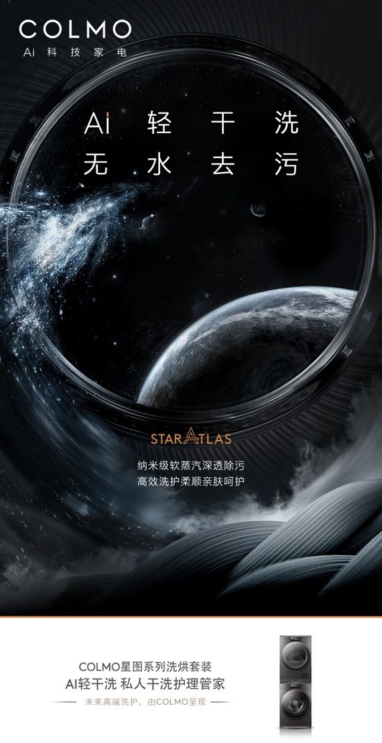 而依托于高端干洗护理智能科技,搭载了行业首创AI轻干洗技术的COLMO星图干洗护理套装,却可以满足用户“足不出户臻享高端私人干洗护理体验”的想象。