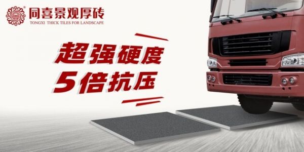 同喜户外景观厚砖通过1250℃高温烧制而成,坯体完全烧透,极大地提高了产品硬度,坚若磐石,厚重给力,抗压力和抗折强度是天然石材的5倍以上。景观厚砖经过大吨位压机压制而成,砖块密度更高,使用寿命更长,是天然石材的5倍以上,是市面上普通地铺石的2倍左右,更加抗压耐用。