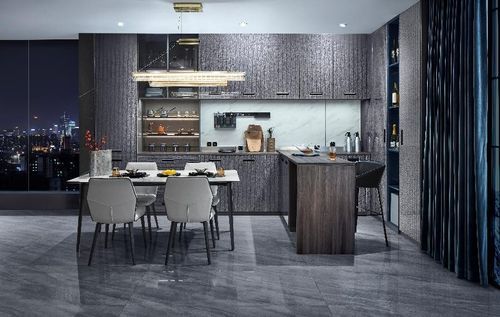 而与其相对应的地柜,则是采用了低饱和度的奢华蓝韵烤漆门板,这种经典蓝也是该系列的亮点之一,在展现低调的同时还透露出奢华感,凸显出现代、简约的风格。不仅如此,地柜门板上还安装有嵌入式拉手,虽然弱化了其存在感,但与烤漆门型搭配却能表现出极简之美。