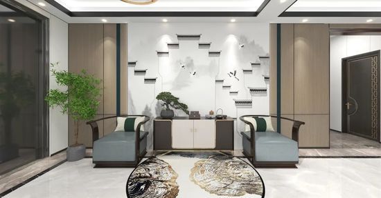 新中式美学被奥华用设计层层剖析开,对称构图、山水墨韵、海纳百川...带着新中式与生俱来的风韵,沉浸交互,感受空间松弛。