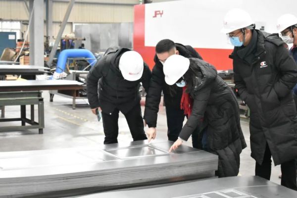 走进车间,参观了和乐门业自动化、智能化设备和线体,如钣金自动化线体、喷涂自动化线体、总装自动化线体以及激光切割机、数控冲、门扇自动成型机等代替传统手工工艺的自动化设备。和乐门业非常重视设备研发、线体改造的投入,以机器设备替代人工,推进“智能制造”。