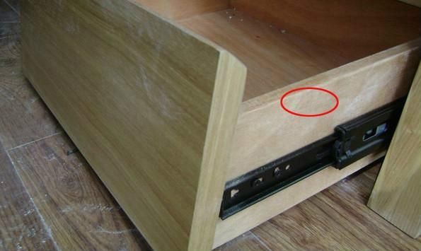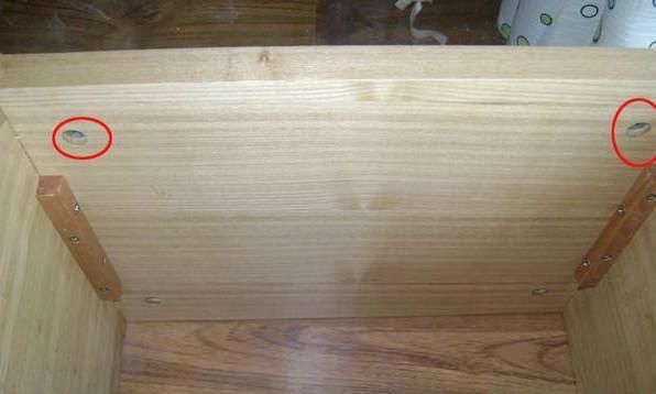 单看这两个洞口就知道这是贴皮家具了,因为真正的实木家具是采取了伟大的榫卯工艺的。