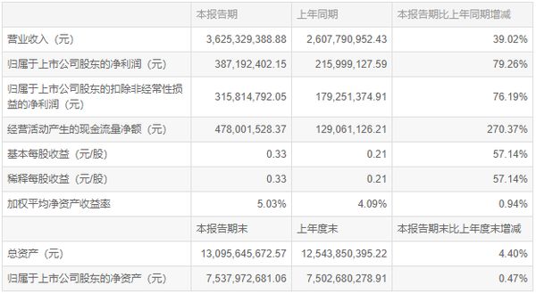 公告显示,报告期内广东东鹏控股股份有限公司实现营业收入为36.25亿元,同比增长39.02%;归母净利润3.87亿元,同比增长79.26%;基本每股收益0.33元。上半年,公司积极开展品牌、产品等重点工作,继续发挥零售主战场优势,实现产品、服务、展厅和品质升级,提高新产品和高值产品占比,精益生产、降本增效、规模经营,一、二季度毛利率同口径对比均获得提升,克服了原材料和能源价格上涨、广佛发生局部疫情等不利影响,实现了公司上半年业绩和利润的较大增长。
