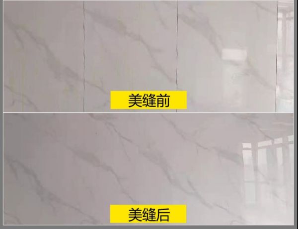 岩板拼接而成的背景墙有缝也可以用岩板胶做无痕美缝。什么是无痕美缝呢?无痕美缝就是用跟背景墙一样颜色岩板胶来做美缝,做出来可以达到无缝的效果,远看就像一整块大理石的感觉!