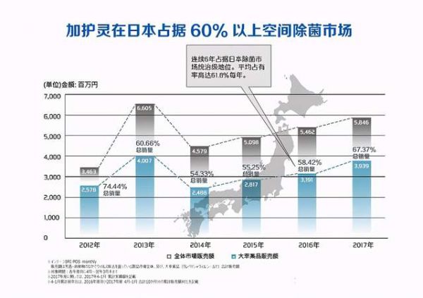 如今,加护灵可谓当之无愧的空间除菌爆款产品,一度霸占日本各大药妆店爆款榜单不说,更是长期市场占有率达到60%以上,甚至在2018年4月至2019年3月,市场份额更是占到日本同类产品80%以上。