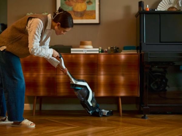 地面清洁方面,BISSELL必胜洗地机一直是主力选手。以智能吸尘洗地机3.0和智能吸尘洗地机3.0pro为例,智能吸拖洗一体,打破了人们常规清洁中“除尘+拖地+清洗”的步骤,不管干湿垃圾均可一步搞定。36V的锂电池可运行30分钟,无绳的设计轻松提起推拉,老人和年轻女孩也能轻松清洁。另外,边缘清洁功能也十分给力,墙角边缘聚集散落的毛发也可清理干净。在清洁完成之后,开启一键自清洁,便可自动清洁和甩干滚刷,完成所有清洁步骤,从头至尾解放双手,无需费力。而最近刚刚上市的必胜洗地机四代更是采用了数控变频无刷马达,每分钟擦地2000次,清洁吸力直接增加了2—3倍,对于顽固污渍也能一遍搞定,大大减轻了日常清洁的压力。