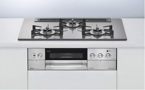 日式燃气灶主要分为两个部分,第一个部分看表面,是传统的灶眼,像下面这张3眼灶,在日本都比较常见。三眼灶的好处就是可以同时做更多美食,中间的用来煲汤、两边的用来炒菜,熟手的话同时操作,不到半个小时就能完成一桌子菜啦~