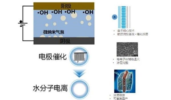 因此如何“生产”蓝氧,让它在人类的生活中、尤其是在当前疫情的大背景下发挥更好的作用,就成为了科学界的一大新课题。目前蓝氧的产生方法有很多种,而高级氧化技术是近年来研究和应用比较多的一种,该技术产生蓝氧的主要特点是能够在光、声、电、磁及高温高压等条件下,将难以降解的有机大分子物质氧化成为低毒或者无毒的小分子。其中电化学氧化是最方便、也最容易大规模应用的方法。它所需要用到的唯一反应介质是水,方便易得,借助具有较强电催化活化的电极,电解产生氧化能力极强的蓝氧,使水中的大分子有机污染物发生降解,不会残留有毒有害的中间产物,无二次污染,非常适合日常使用。