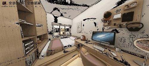 儿童房采用多功能布局,起承转合自如流畅,延续空间整体设计语言的同时,加入金地新家定制化柜体与桌面结合,地面增添淡淡的明媚色调与手工质感。清爽干净,收纳能力和生活学习都很强的融合设计。
