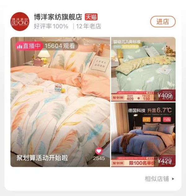 近期,一家名为“博洋家纺工厂店”的某宝店,店内上架产品均为博洋家纺产品,但定价极低。经查实,此店铺并非博洋总公司开设,属于违规C类店铺。博洋家纺在某宝仅开设品牌注册的官方旗舰店。