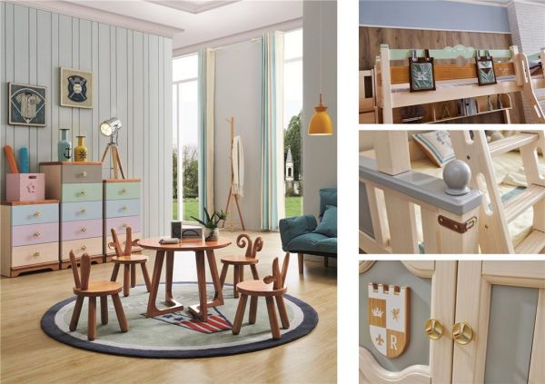 运用橡胶木可塑性强的特性,结合符合现代审美的精致外形,设计出适合儿童房间氛围的精致家具产品。
