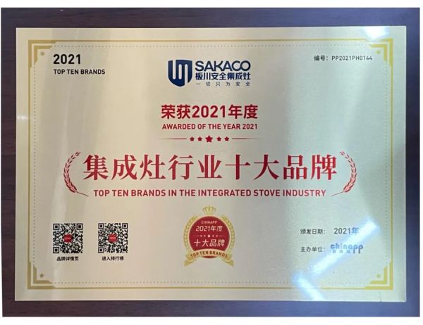 板川凭借强大的品牌实力于众多集成灶品牌中脱颖而出,荣获买购网2021集成灶十大品牌,展现了行业大品牌该有的高度、深度和风度。