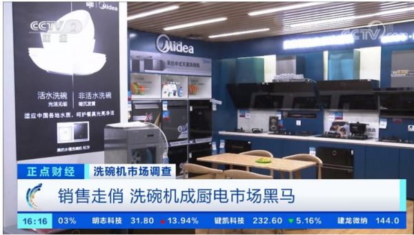 最近,洗碗机成为厨电市场的热销爆款,频频霸占热搜榜。随着消费的升级及健康观念的深入人心,洗碗机销量迎来高速增长期,尤其是以美的为代表的“中式”国产品牌洗碗机,备受消费者青睐。日前,央视财经频道,探访了洗碗机市场,并对美的洗碗机进行了报道,让消费者对洗碗机市场有了更深入的了解。